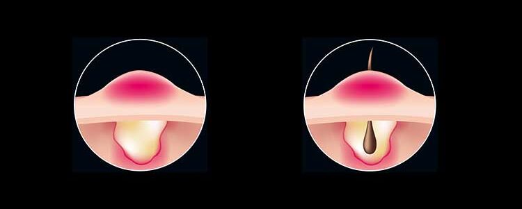 - Der Eiter sollte rasch an die Hautoberfläche gelangen können. Ansonsten besteht durch die Ausbreitung der Bakterien das Risiko einer grösseren Infektion. Breitet sich z.B. eine Haarbalgentzündung aus, kann es zu einem schmerzhaften Furunkel kommen. Wenn mehrere Furunkel miteinander verschmelzen, entsteht ein sogenannter Karbunkel.