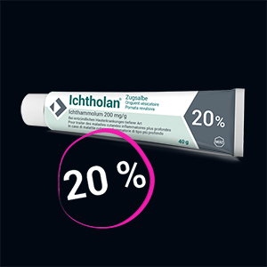 Ichtholan® Zugsalbe enthält als Wirkstoff Ichthyol (Ammoniumbituminosulfonat) und wirkt antibakteriell, entzündungshemmend und antimykotisch. Bei eitrigen Hautprozessen beschleunigt es im fortgeschrittenen Stadium der Entzündung die Einschmelzung des Krankheitsherdes und den Durchbruch des Eiters nach aussen.